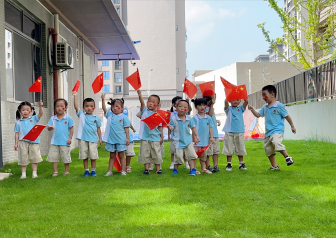 孩子、老师们挥舞起手中的小红旗,他们跳跃,旋转,一边欢笑一边挥舞,就像拥有了小小的魔法棒,将喜庆的气氛传递给每一个人。这一刻,他们是最纯真的祝福者,用自己的行动,传递着对祖国深深的热爱和祝福。