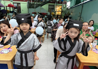 又一年,清蝉的歌唱爬上树梢。又一年,蒲公英的孩子飘向远方。这个七月,是洒泪告别,深深感恩的季节。这个七月,是挥手相送,依依不舍的季节。就在这个七月,我们一同迎来了金色摇篮幼儿园大班毕业典礼。7月23日下午,幼儿园举行了“感恩成长,放飞梦想”大班毕业典礼。《毕业歌——金色童年》拉开了活动的序幕,园长妈妈和老师们为孩子们送上了祝福,希望孩子们进入小学后,继续努力,探索更广阔的世界。今年的毕业典礼将以一种新的形式展开, “开笔礼”仪式,开笔礼是中国传统中对少儿开始识字习礼的一种启蒙教育形式,在古代,学童会在开学的第一天早早来到学堂,有启蒙老师讲授人生最基本、最简单的道理,并教读书、写字、然后参拜孔子像,才可以入学读书,这一仪式俗称破蒙。希望通过今天的开笔礼,以此激励同学们珍惜读书机会、勤奋学习,同时又通过这种特别的方式,来弘扬我国优秀的传统文化。希望它能为孩子们留下深刻而又美好的回忆,